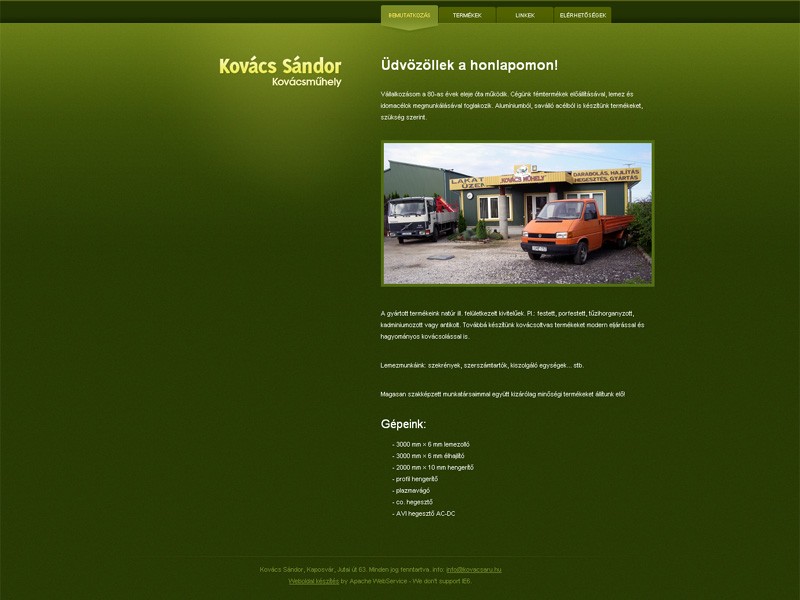 A fémtermékek előállításával, lemez és idomacélok megmunkálásával foglakozó kovácsműhely számára készítettük a céget és termékeit bemutató, statikus weboldalt.
